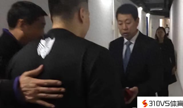 而竞赛打完后,李根从球员走回球员休息室,北京的袁总和张敬东指点拉住了,在球员通道给了一个小盒,说祝贺李根。随后就转身分开了,李根事先也前往更衣室。后续想来一下不对,闵鹿蕾没来,后续又跑到休息室和闵鹿蕾打招呼。