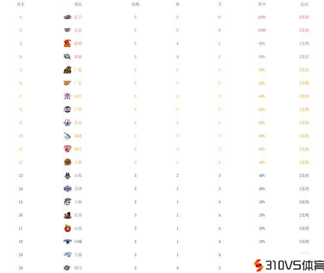 CBA最新排名!辽篮北京全胜领跑,新疆力压广东,一队全败垫底