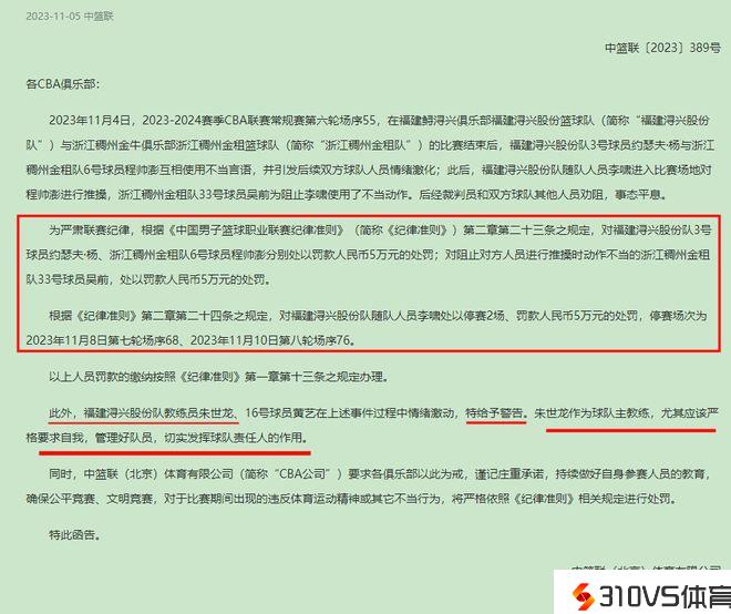 其中对惹起事端的浙江队的程帅澎和福建队的约瑟夫杨各罚款5万元,还对卷入其中的浙江队外乡中心球员吴前处以5万元罚款,而参与其中帮福建队主教练朱世龙出头的录像剖析师李啸虽然被吴前直接撂倒在地,但他也被罚款5万元,并且还停赛两场。
