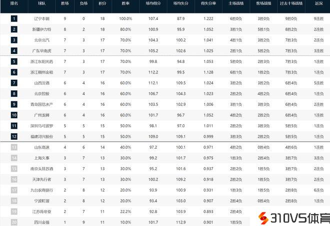 CBA第一阶段排名!辽篮9连胜霸榜,新疆力压广西南京,同曦低迷