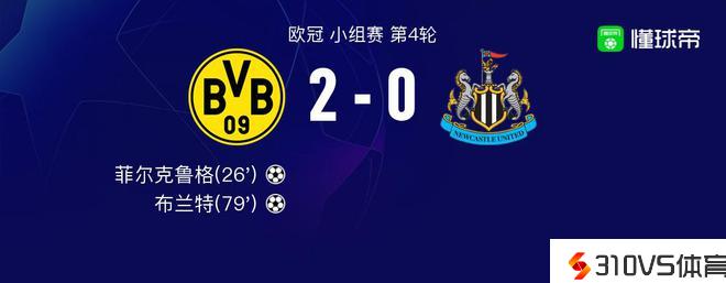 多特蒙德vs纽卡斯尔联球员评分:布兰特8.6分,穆科科5.9分