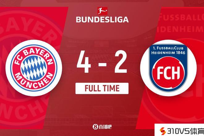 下半场伤停补时5分钟,全场竞赛完毕,最终拜仁4-2海登海姆。
