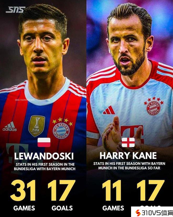 凯恩在拜仁德甲首赛季11场17球,已追平莱万在拜仁德甲首赛季数据