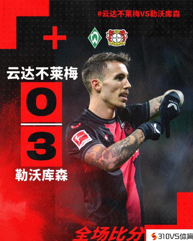 易边再战,第76分钟,西班牙新晋国脚格里马尔多,左脚爆抽球门上角入网,勒沃库森3-0锁定胜局。