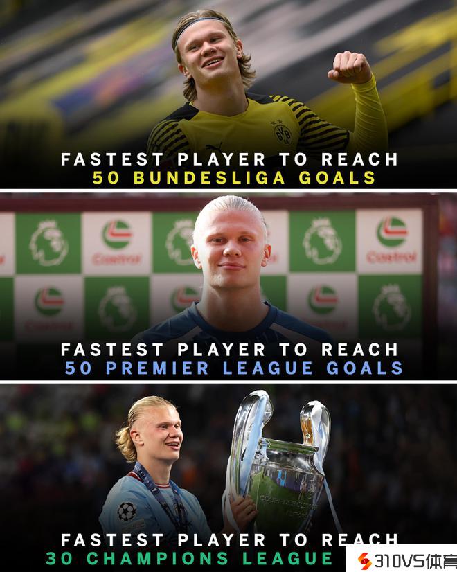 进球收割机!德甲50球&欧冠30球&英超50球,最快记载都属于哈兰德