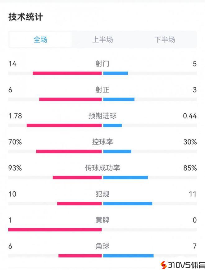 让二追三!曼城3-2莱比锡数据:射门14-5,射正6-3,控球率七三开
