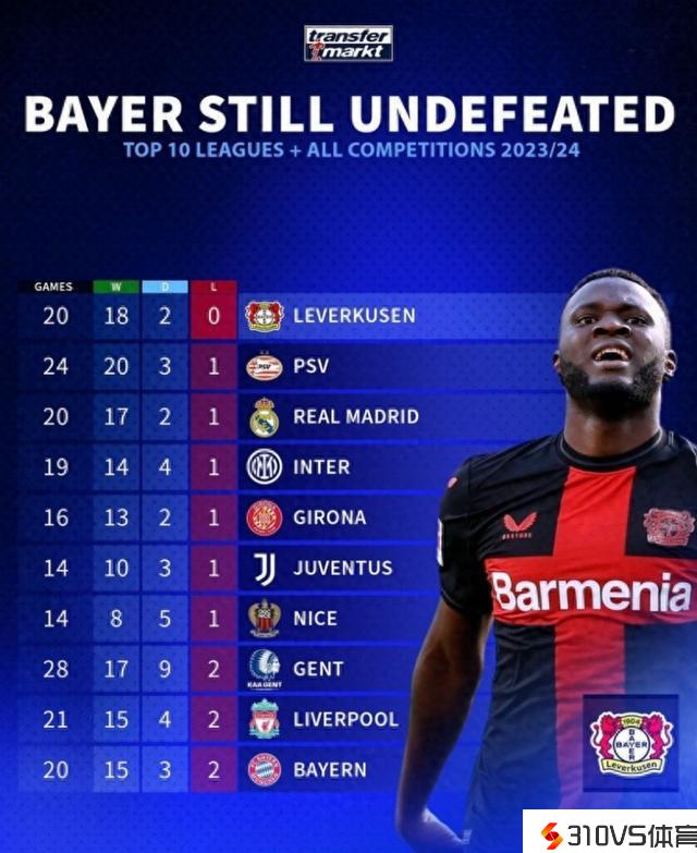 阿隆索有东西!欧洲前十联赛球队各项赛事战绩:仅药厂仍不败