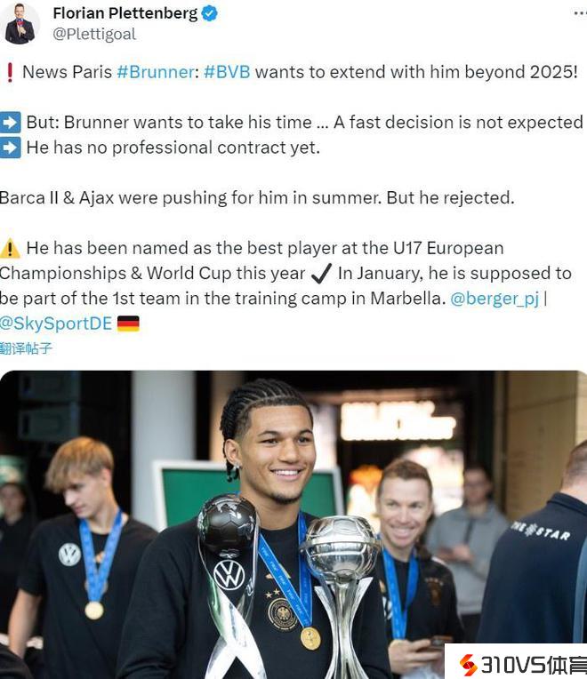 记者:多特想和新星布伦纳续约,但球员自己并不急着做决议