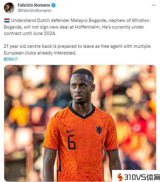 罗马诺:霍芬海姆21岁中场博加德预备明夏离队,多家俱乐部有意