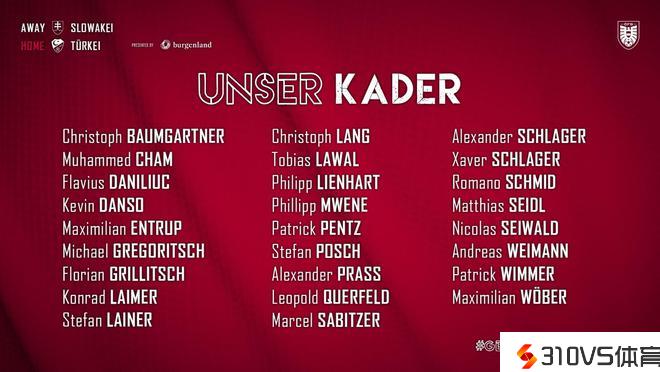 中场:鲍姆加特纳(RB莱比锡)、查姆(克莱蒙)、格里利奇(霍芬海姆)、莱默尔(拜仁慕尼黑)、克里斯托弗-朗(维也纳快速)、普拉斯(格拉茨风暴)、萨比策(多特蒙德)、克萨韦尔-施拉格尔(RB莱比锡)、施密德(云达不莱梅)、塞德尔(维也纳快速)、赛瓦尔德(RB莱比锡)、维默尔(沃尔夫斯堡);