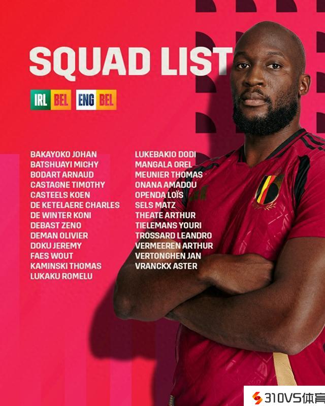 比利时名单:卢卡库、多库、特罗萨德在列,德布劳内列席