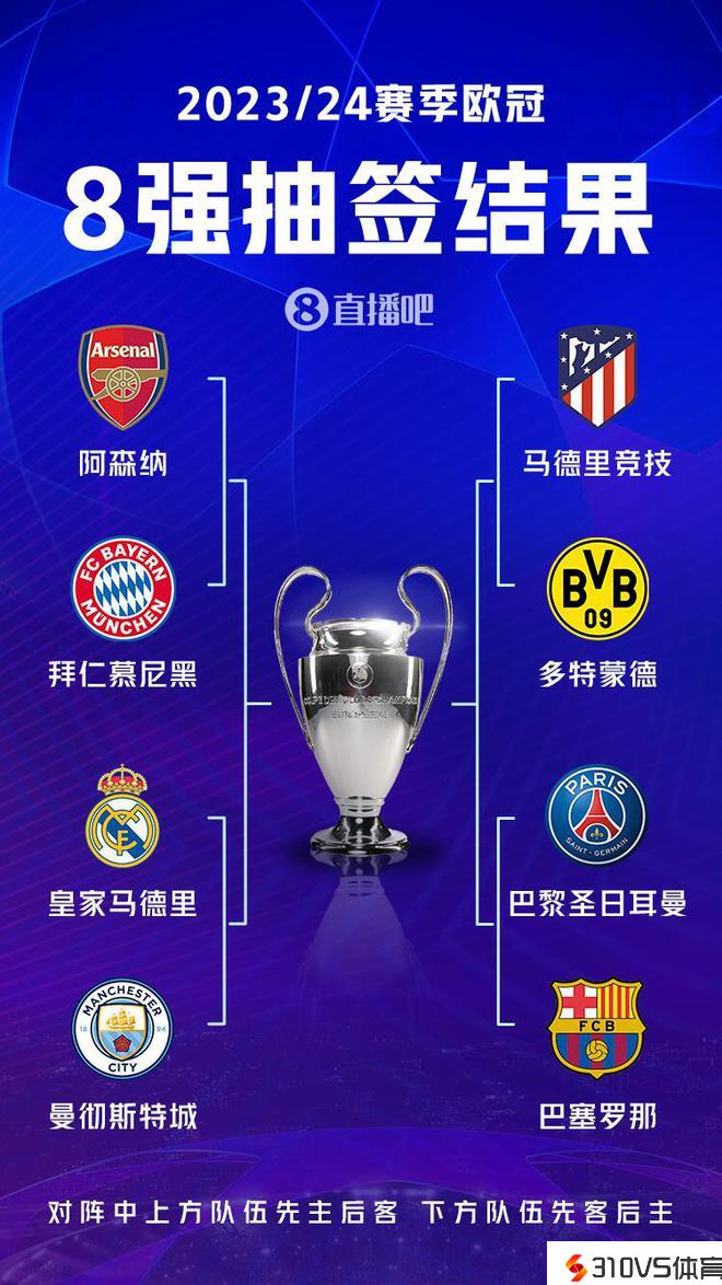 欧冠1/4决赛对阵出炉:4场强强对话!你最等候哪一组对决?