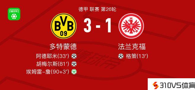 多特蒙德vs法兰克福全场数据:射门数16-9,射正数6-6