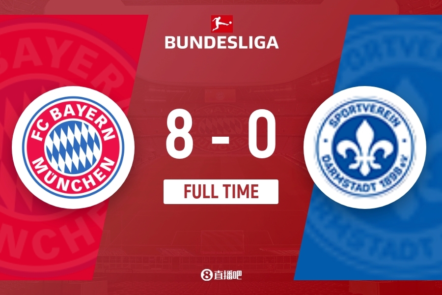 下半场伤停补时2分钟,全场比赛结束,最终拜仁8-0达姆施塔特。