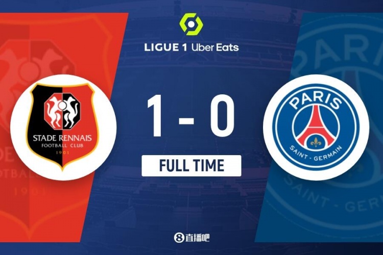 全场比赛结束,巴黎0-1雷恩。