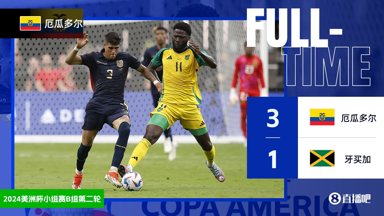 下半场补时6分钟,厄瓜多尔3-1牙买加。