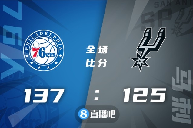 🏀恩比德33+10 哈登16+8 珀尔特尔16+10+5 76人送马刺8连败