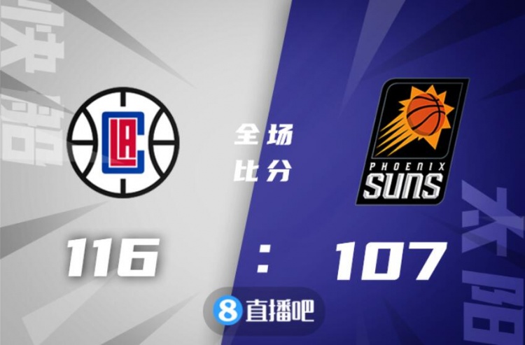 快船上来打得非常主动,一波10-2开局直接建立优势,而小卡手感冰凉半场8中0一分未得,保罗和布克虽也手感不佳,但奥科吉成为太阳主力得分点帮助追分,特伦斯-罗斯迎来太阳首秀,外线手感不佳但两分球手感不错,太阳半场追到只差2分。下半场,艾顿接连内线强打命中,太阳外线三分手感也回暖一度反超比分,但小卡终于破荒,曼恩里突外投单节上双帮助快船给出回应并重新取得领先,末节布克上来就连续失误,快船抓住机会将分差拉开至双位数,随后双方展开拉锯战,太阳追分总是差一点,最终快船116-107力克太阳,升至西部第四。