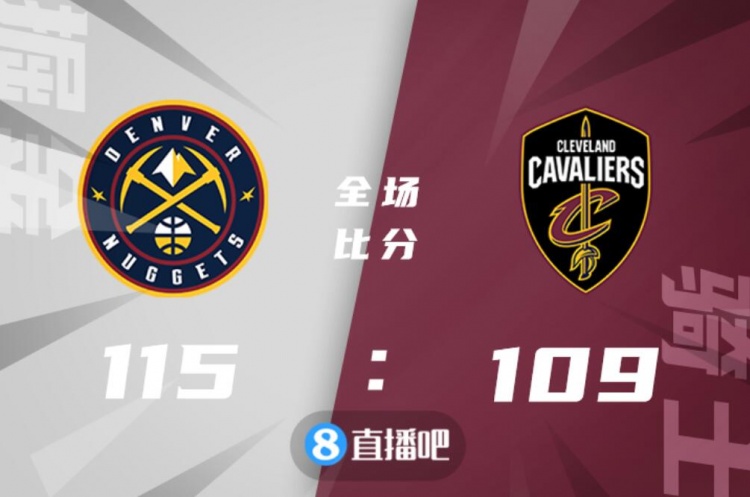 比赛开始双方就展开对攻战,小莫布里首节7中6怒砍14分,而约基奇同样无法被限制住,连续内线造杀伤给出回应,掘金实力更胜一筹取得领先,但次节掘金进攻端出现问题,骑士外线手感不佳便频频杀入内线将比分反超,米切尔和加兰半场各得到11分。下半场,约基奇三节没打完就已经三双,穆雷和波普手感也回暖,但小莫布里继续手感火热单节又砍下15分,骑士继续保持微弱领先,末节双方命中率都有下降,约基奇继续里突外投带领掘金队直接反超比分,小波特外线也给予支持,米切尔连续追身外线球不中,最终掘金115-109力克骑士,拿到4连胜。