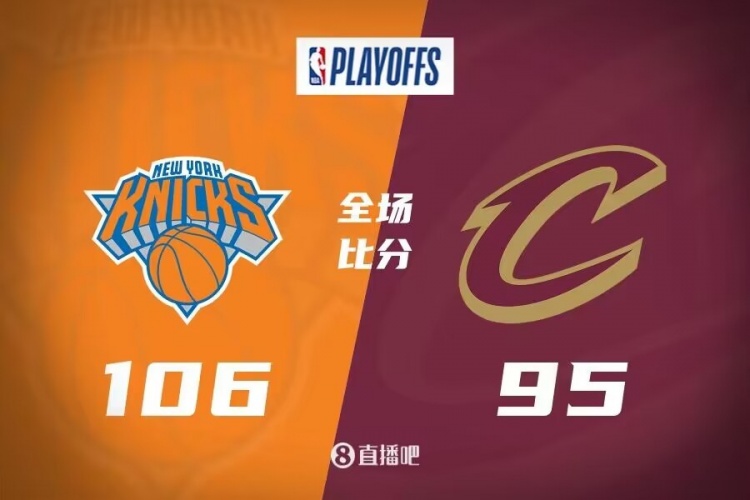 上半场,双方开场阶段短暂相持,尼克斯多点开花打成13-2的攻击波取得两位数领先,骑士连中三分追赶,双方围绕10分左右分差展开拉锯战,尼克斯持续发力保持优势,半场战罢尼克斯61-51领先10分。下半场,尼克斯牢牢占据场上主动,不断扩大领先,米切尔得分助攻一肩挑带队追赶,骑士一度将分差迫近到6分,尼克斯连投带罚拿分稳住局势,骑士苦苦追赶无果,最终,尼克斯106-95击败骑士,以总比分4-1淘汰对手晋级。