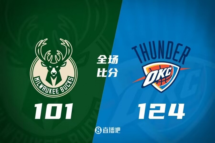 比赛上来霍姆格伦就抛射为雷霆开局,亚历山大与比斯利各自扔进三分,利拉德还是手感冰凉,字母哥独木难支,亚历山大攻守两端带领球队首节建立8分领先,次节以赛亚-乔里突外投连砍8分成为奇兵,雷霆拉开双位数领先,随后双方连续外线发炮展开对飚,字母哥压哨扣篮超时,半场雄鹿追到差5分。下半场,雄鹿众将接连冲击内线一度追到差1分,但基迪及时突破止血,亚历山大和霍姆格伦接连扔进三分,雷霆一波20-6攻击波再次稳住局势,分差直接来到20分以上,末节双方进行深度轮换,雷霆牢牢保持住20分以上领先,最终雷霆124-101大胜雄鹿。