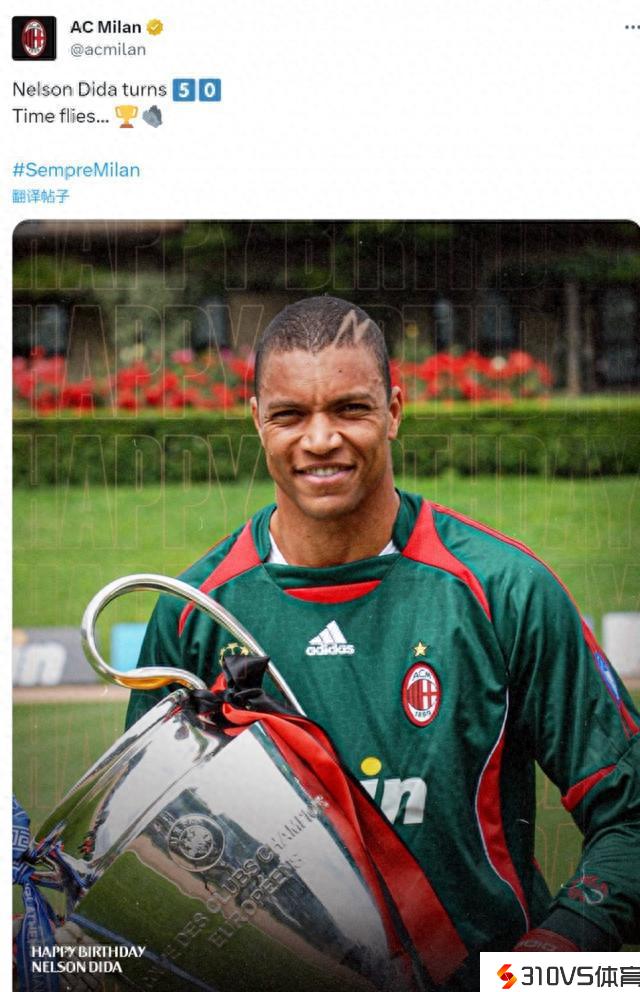 米兰祝勋绩门将迪达50岁生日快乐,球员效能时期2次问鼎欧冠