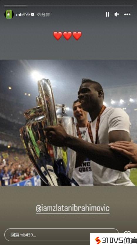 不服?伊布称巴洛特利糜费天赋,后者立刻晒手捧欧冠奖杯图回应