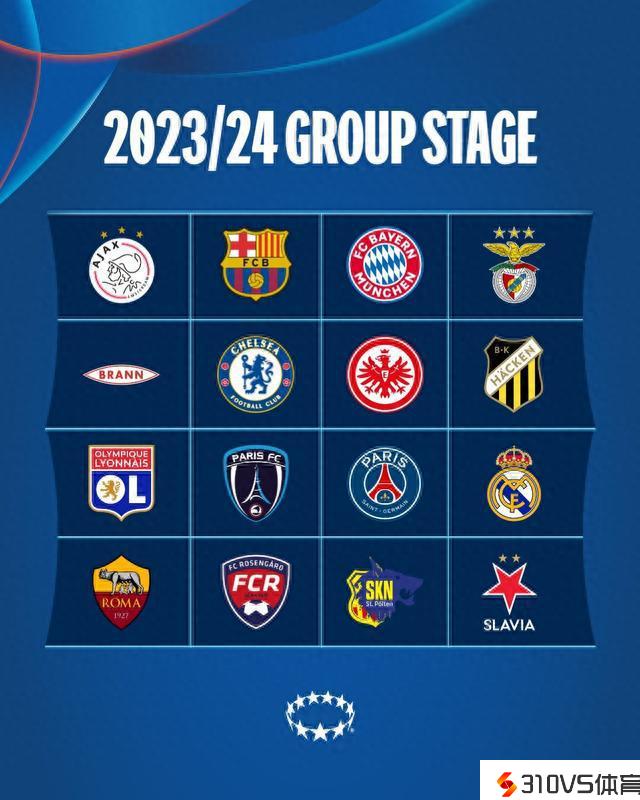 第四档:阿贾克斯女足(荷兰)、巴黎FC女足(法国)、法兰克福女足(德国)、布兰女足(挪威)