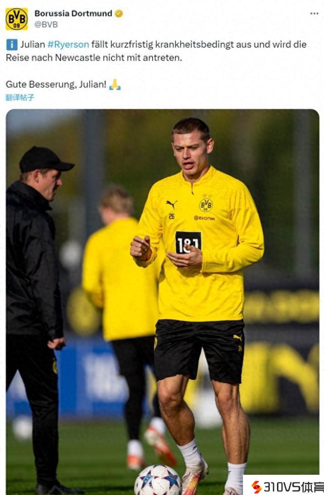 多特官方:莱尔森因病列席对阵纽卡的欧冠竞赛