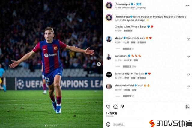 初次欧冠首发即破门,费尔明社媒晒照纪念:在主场渡过梦境的夜晚