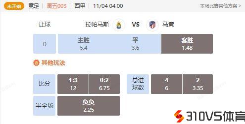 初始数据受0.5球,目前为受0.5-1球。可见给马竞的支持力度曾经末尾拉升。进球数没有太大变化。