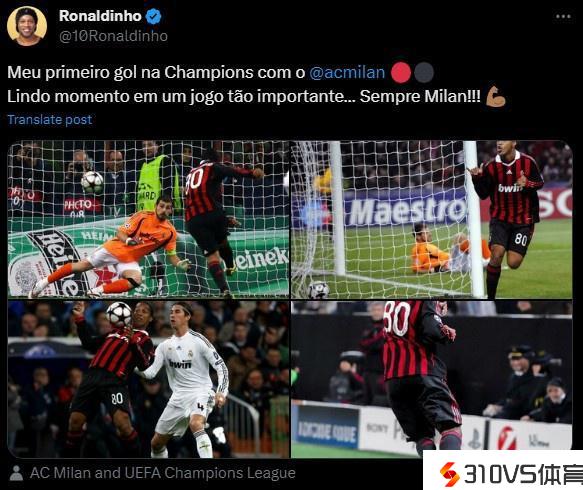 小罗社媒纪念米兰生涯欧冠首球14周年:Sempre Milan!