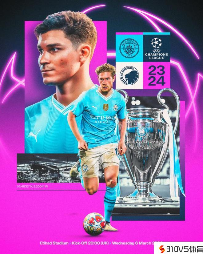 曼城发布海报预热同哥本哈根竞赛:德布劳内、阿尔瓦雷斯出镜