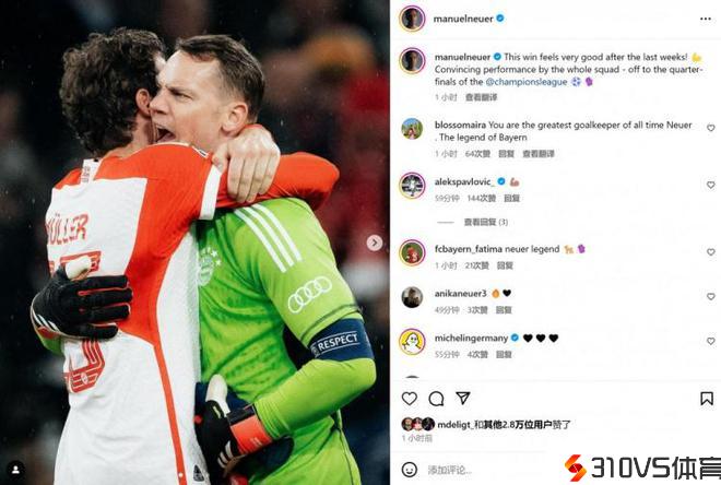 追平欧冠零封纪录,诺伊尔社媒晒照:球队拿出了令人信服的表现