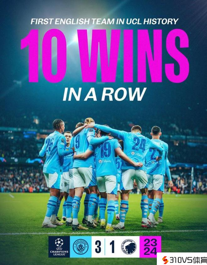 再创纪录!曼城官方晒海报:成为首支欧冠10连胜的英格兰球队