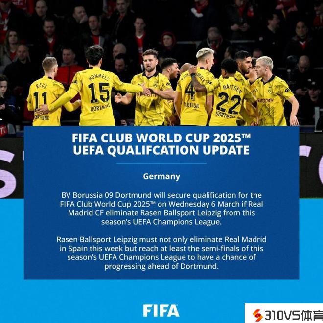 据国际足联的官方音讯,由于莱比锡在欧冠1/8决赛被皇马淘汰出局,依据现有积分状况,多特提早锁定了2025年世俱杯参赛资历,与拜仁代表德甲球队携手参赛。