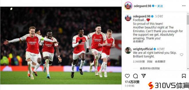 厄德高ins庆贺成功:为这支球队感到自豪,感谢球迷支持!