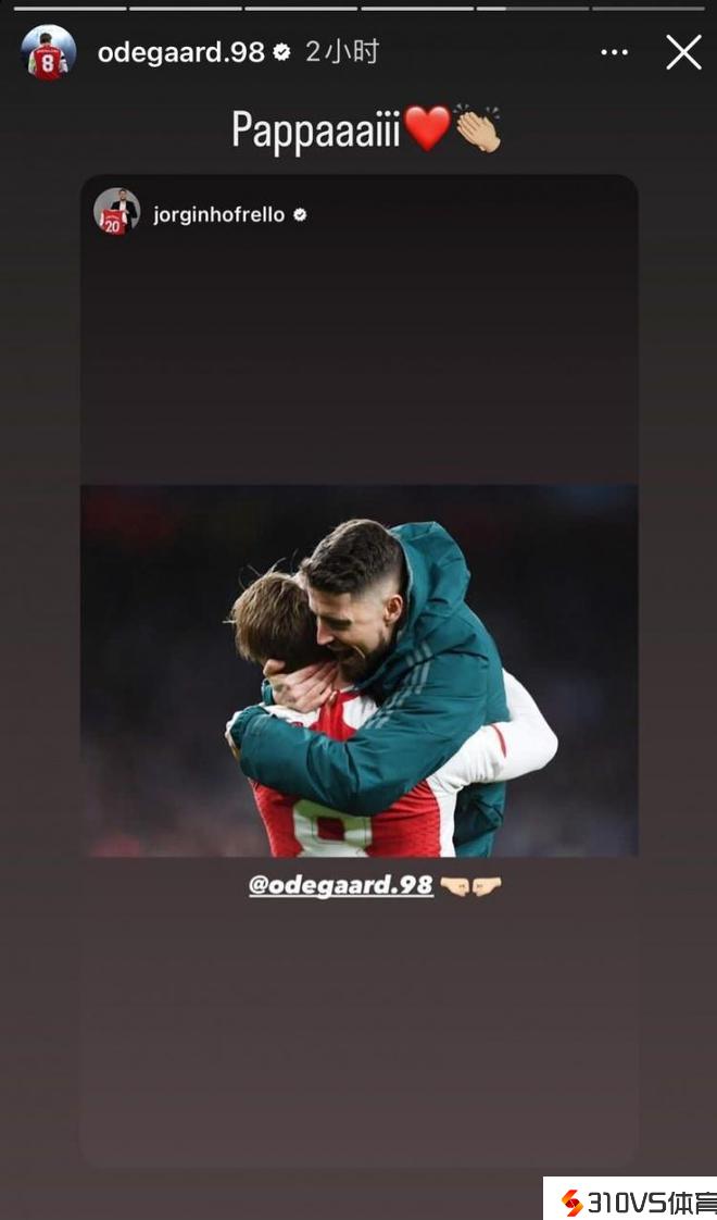 咱俩各论各的若日尼奥晒两人拥抱合影,厄德高回复:爸爸!❤