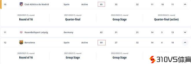 谁能晋级?2025世俱杯欧洲球队积分:马竞65分,巴萨59分