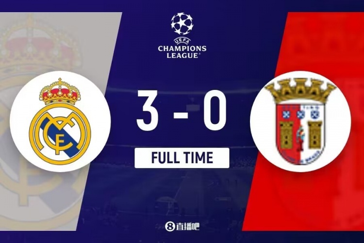 欧冠-皇马3-0布拉加4连胜出线 巴西双星传射迪亚斯破门卢宁扑点