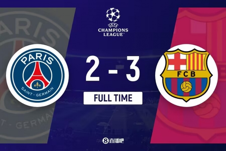 下半场补时4分钟。最终全场比赛结束,巴黎2-3巴萨。