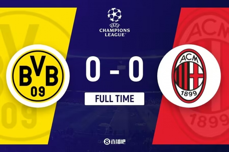 下半场伤停补时3分钟,全场比赛结束,多特蒙德0-0AC米兰。