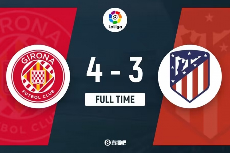 西甲-补时绝杀!赫罗纳4-3马竞仍居第二 莫拉塔戴帽难救主
