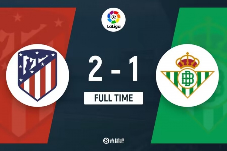全场比赛结束,马德里竞技2-1贝蒂斯。