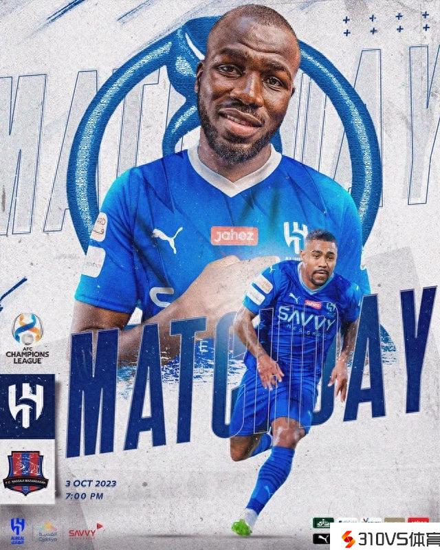 利雅得新月晒亚冠赛前海报:库利巴利C位出镜