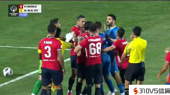 这是竞赛停止到第31分钟的时分,利雅得新月进攻压到禁区,米特洛维奇在禁区中心被吹罚,随后他与穆罕默德扎德发作口角。随着两人的互喷,双方球员迅速围了过去,抵触就此迸发。在抵触中,双方各有一名球员倒地,随后马宁给霍什曼德出示了一张黄牌。