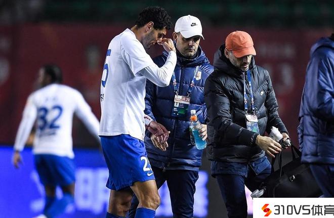 竞赛第49分钟,又一位泰山外援出现了伤情。进球罪人克雷桑在拼抢中被元敏诚打到面部受伤,随后球员咬着纱布停止竞赛。