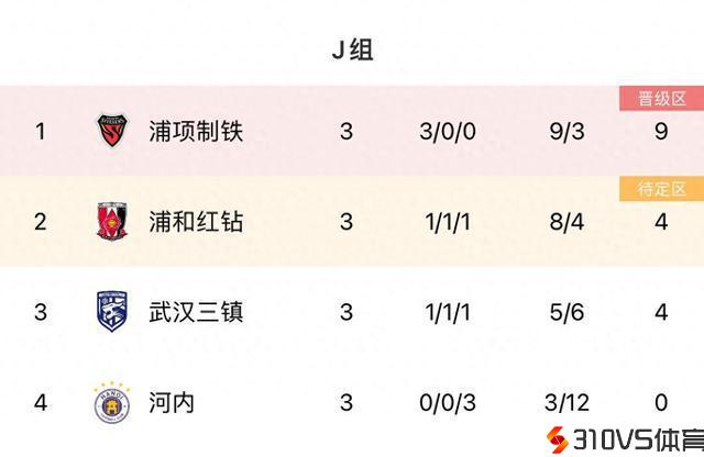亚冠J组积分榜:三镇1胜1平1负4分列第三,下轮客战河内不容有失