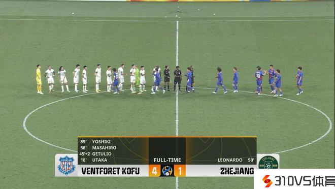 第89分钟,甲府风林杀死竞赛!三平和司中场精准直塞球,鸟海芳树禁区单刀时机推射破门,甲府4-1浙江队。