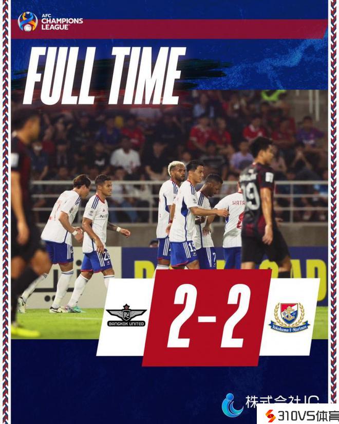 亚冠1/8决赛首回合-曼谷联补时绝平,主场2-2战平横滨水手